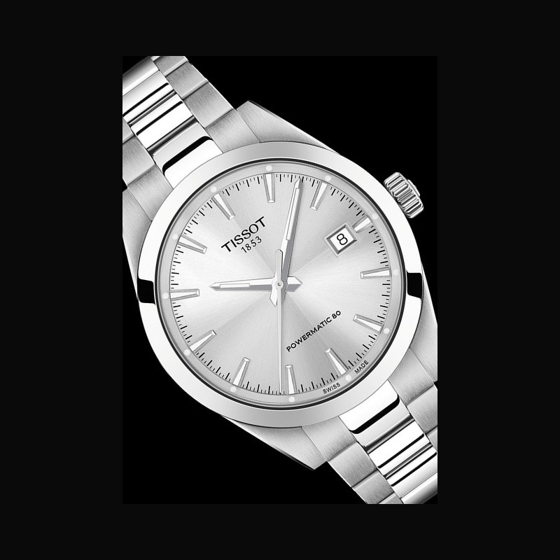 The new Tissot Gentleman has been conceived with balance at its core. Its stainless-steel case offers a well-proportioned and sleek profile, combining presence with discretion. A domed sapphire crystal with anti-reflective coating brings depth to the design, subtly enhancing the curvature of the case and ensuring optimal legibility in changing light conditions. On the reverse, a see-through case back reveals the movement, granting a glimpse into the craftsmanship that brings the watch to life. At 3 o’clock, a precisely framed date display adds practical utility without interrupting the purity of the dial.
