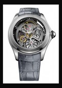 | More characteristics : | MOVEMENT Power reserve: 42 hours Frequency: 4 Hz. 28'800 vph Dimension: 11 1/2''' Rubies: 21 Movement finishes: Rotor with CORUM dedicated decoration CASE Stainless steel Domed sapphire crystal with anti reflective treatment Back type: Open back cover in stainless steel DIAL No dial Hour and minute hands: Leaf. Rhodium-coated. Skeleton Second hand: Baton. Rhodium-coated BRACELET Alligator leather and rubber Grey Interhorn/Buckle: 24/20 mm Tongue buckle in Stainless stee |