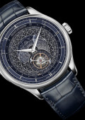 • A Cosmotourbillon makes a complete circuit of the dial in one sidereal day, and a Northern Hemisphere sky vault tracks the positions of the constellations in real time, as seen from the Vallée de Joux