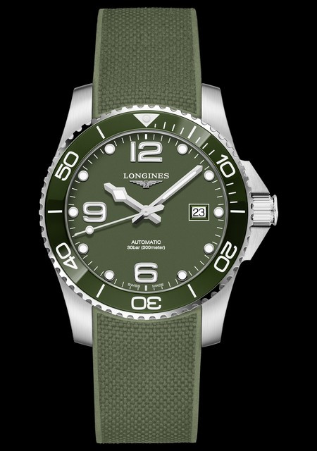 The green model is the perfect addition to the HydroConquest collection’s blue, grey and black timepieces. The khaki model features a ceramic bezel insert that matches the colour of the dial and ties together the fully modernized design and sporty silhouette. Mounted on a stainless steel or green rubber strap, the watch, which is available in two sizes (41 or 45 mm in diameter), is powered by a self-winding mechanics in movement (L888.3 calibre).