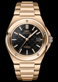 | + More characteristics : | Movement Mechanical movement IWC-manufactured calibre 32111 Frequency 28,800 vph / 4 Hz Jewels 21 Power reserve 120 h Winding Automatic Case 18-carat 5N gold case Dial Black Bracelet / Buckles Integrated 18-carat 5N gold bracelet with butterfly folding clasp |