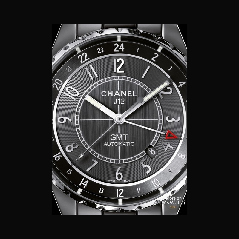| + More characteristics : | Titanium ceramic. CHANEL’s new highly scratch-resistant material Resistance close to that of sapphire Its unique color and sparkle are obtained by combining titanium with ceramic and polishing with diamond powder Movement. 42-hour power reserve Functions Hours. minutes. seconds. date and GMT 2nd 24-hour time zone Dial Vertical satin finish in the centre and circular guilloché at the edges Rhodium-plated numbers and hands Steel triple-folding buckle |