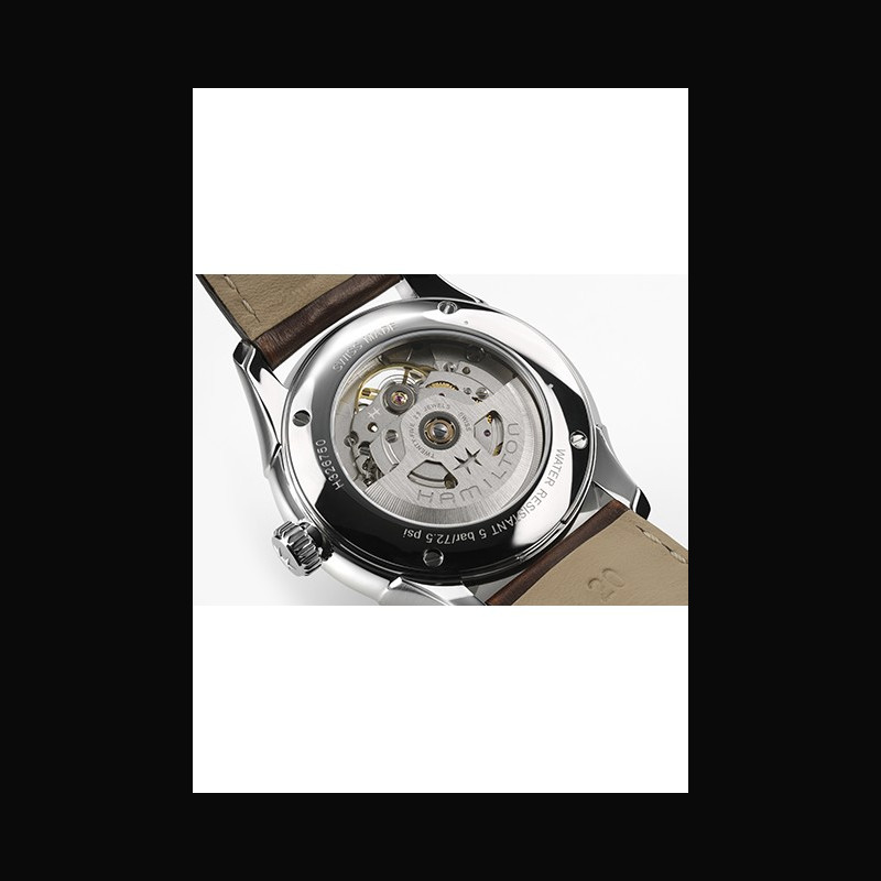 By opening the dial to reveal the movement beneath, Hamilton highlights the mechanical artistry that defines traditional watchmaking while maintaining the clean, architectural lines that have made the Jazzmaster a contemporary icon.