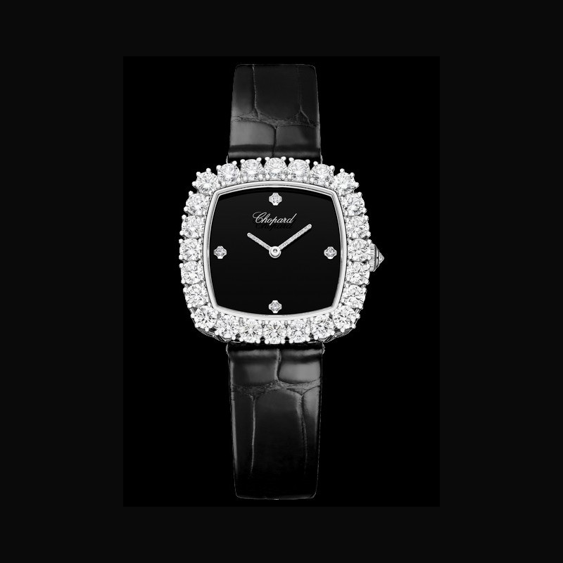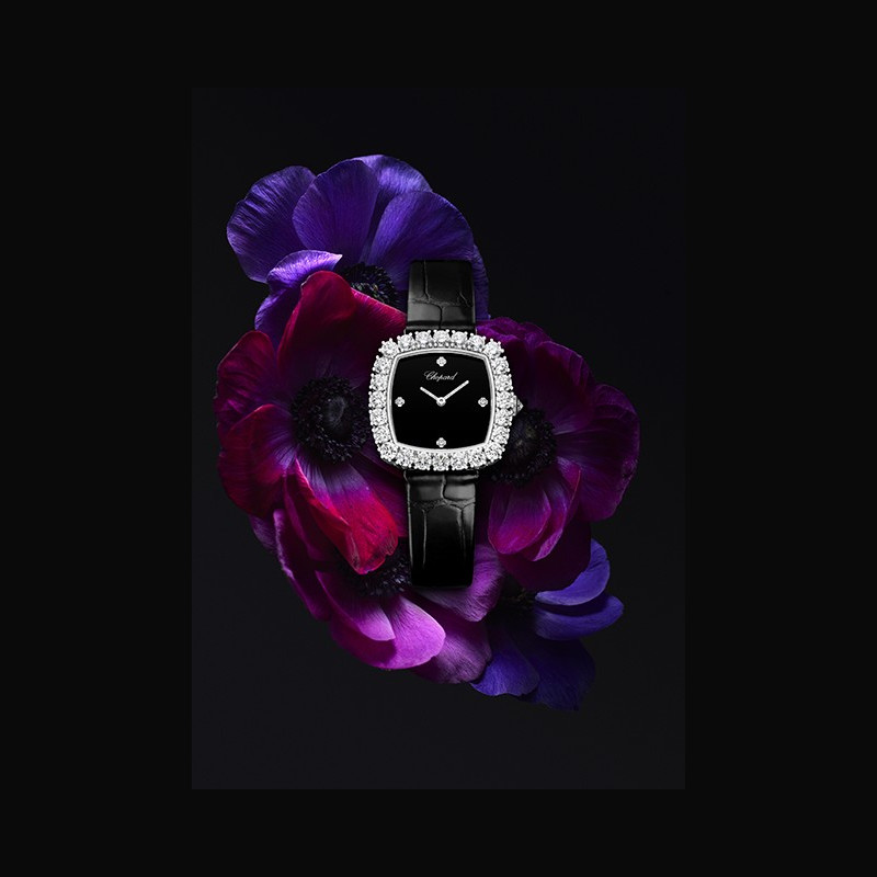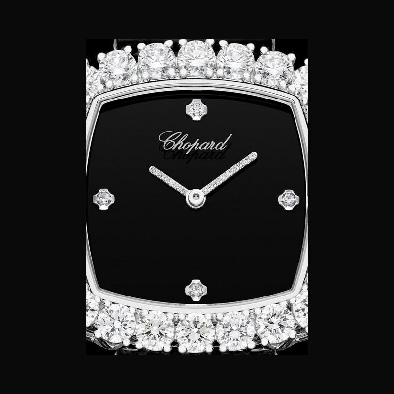 Chopard enriches this legacy with a new creation showcasing a cushion-shaped case that frames a deep black onyx dial – a testament to the Maison’s enduring mastery of ornamental stone artistry. A distinguished variety of chalcedony, onyx is celebrated for its enduring symbolism of strength and stability. Shaped by the uniqueness of Nature, each dial becomes a singular creation, ensuring no two are ever alike.