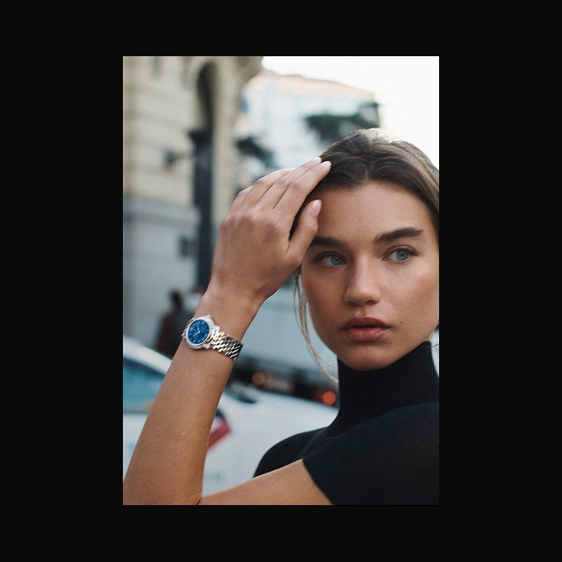 With Lady Premier on the wrist, confidence comes naturally. This campaign celebrates the woman who wears it—effortless, charming, and unapologetically herself. Whether she’s out with friends, chasing a big idea, or taking on the city, she brings ease, elegance, and a touch of fun to everything she does.