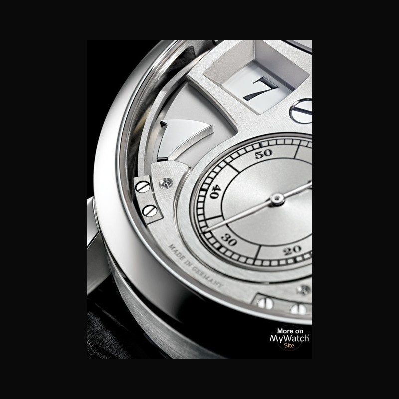 | Complication : | Jumping Minute Power Reserve Indicator 'Petite Sonnerie' Striking Mechanism Jumping Hour Stop second mechanism Small Seconds |