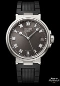 Symbolising this new generation, the Marine 5517 displays the date at 3 o’clock, housed in an hours chapter with Roman numerals. The latter are coated with a luminescent material, as are the minutes markings and the Breguet hands. The maritime world is evoked by the seconds hand bearing a “B” in a reinterpreted version of the corresponding maritime signal flag.