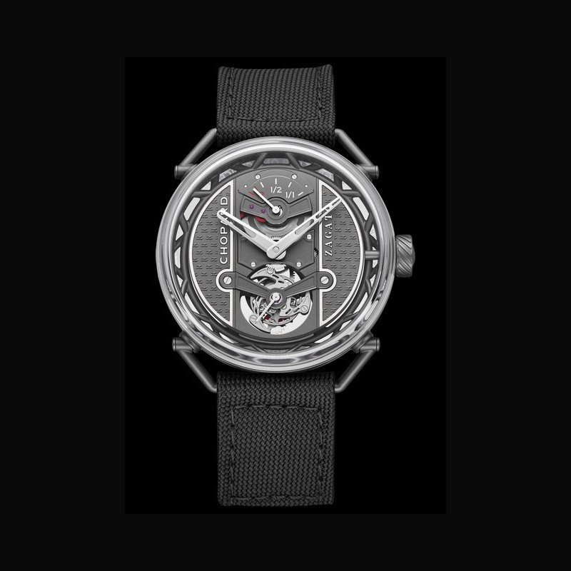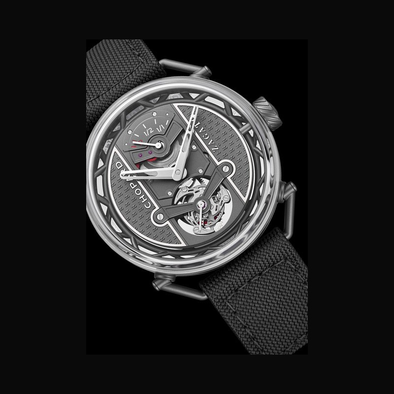The new creative collaboration between Karl-Friedrich Scheufele (Chopard Co-President), the Chopard design team, Andrea Michele Zagato (Zagato President) and Norihiko Harada (Zagato Chief Designer) combines iconic codes from both Maisons to introduce a true concept watch showcasing the watchmaking prowess of the Manufacture's workshops founded in Fleurier in 1996 with the avant-garde spirit of the Italian coachbuilder. Much as a concept car represents innovation in the automotive world, Chopard introduced its first concept watch in 2020 with the Mille Miglia Lab One model, offering enhanced performance and a futuristic aesthetic influenced by racing cars. Today, the Zagato Lab One Concept model is a horological tribute to the automotive designer.