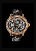 | + More characteristics : | Chalcedony mainplate Casing-dimensions : 33.90 x 28.90 mm 15 jewels Frequency : 21 600 vibrations per hour 72 hours power reserve 18-carat pink gold case set with 395 diamonds (~ 3.45 carats) Outer and inner rings in diamond-set 18-carat pink gold |