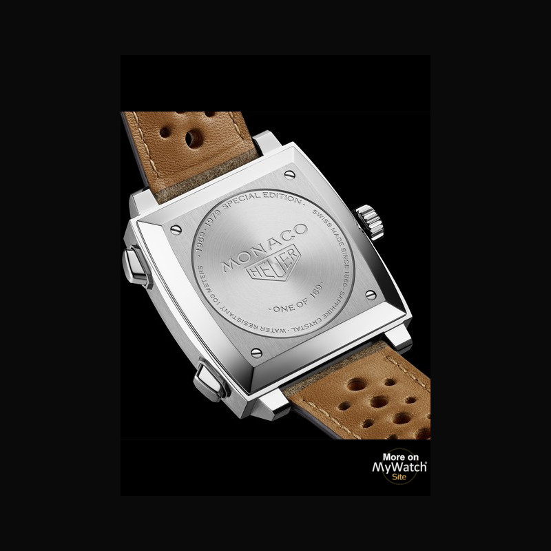 The caseback of this 1970s-inspired timepiece is engraved with the original “Monaco Heuer” logo as well as “1969-1979 Special Edition” and “One of 169”.