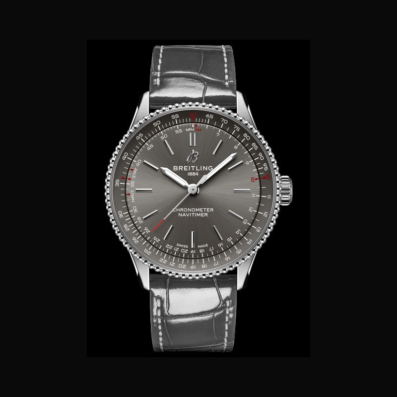 The Navitimer 36 is powered by the COSC-certified Breitling Caliber 17, providing three-hand time and automatic winding.