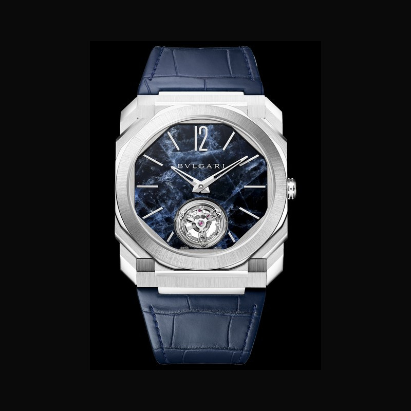 After debuting a “Verde Alpi” green marble dial paired with a yellow gold case earlier this year, Bvlgari now reveals a new version of the Octo Finissimo Tourbillon at Geneva Watch Days: just 4.85 mm thick and 40 mm across, with a dial cut from deep blue marble sourced from the finest Italian quarries.