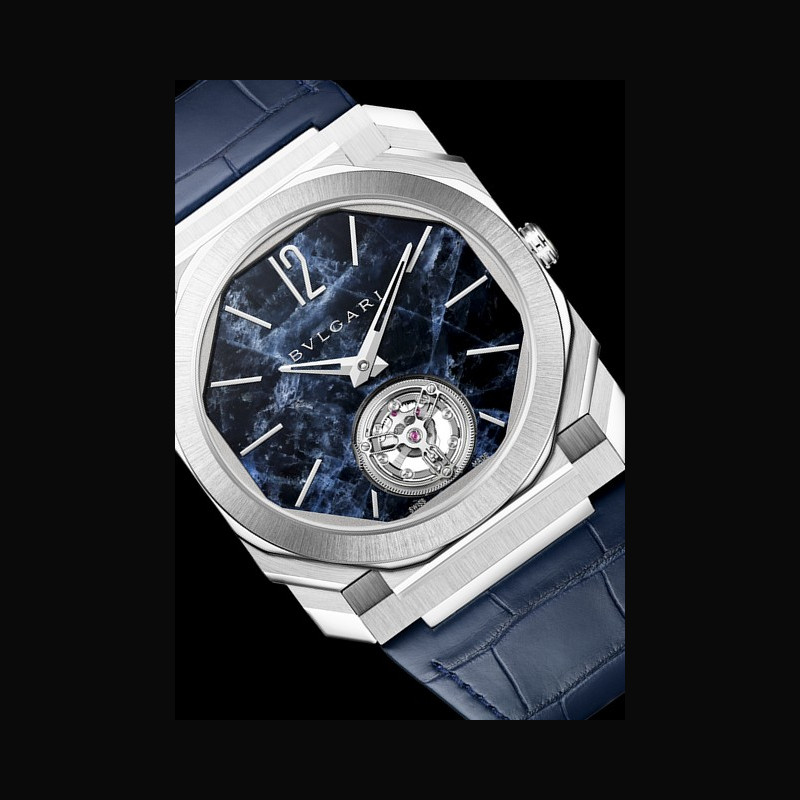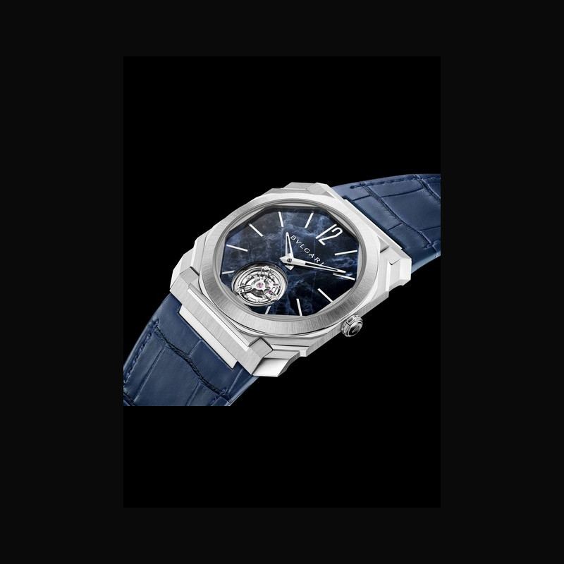 Inside beats the hand-wound BVL 268 calibre – measuring just 1.95 mm and oflering a 52-hour power reserve. With its Roman aesthetic and uncompromising finesse, this blue marble Octo Finissimo is both a technical and emotional triumph.