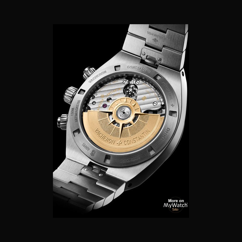 | More characteristics : | Movement Caliber 5200, developed and manufactured by Vacheron Constantin 22K gold Overseas oscillating weight 30.6 mm (13’’’¼) diameter 6.6 mm thick Approximately 52 hours of power reserve 4 Hz (28,800 vibrations/hour) 263 components 54 jewels Indications Hours and minutes Small seconds at 9 o’clock Date Column-wheel chronograph (30-minute and 12-hour counters) Case Quarter-turn screw-lock push-pieces Dial Translucent blue lacquered, sunburst satin-finished base with velvet-finished flange, snailed counters 18K gold hour-markers and hours & minutes hands highlighted with white luminescent material Bracelet/Straps Steel bracelet, half Maltese cross-shaped polished and satin-brushed links Delivered with a second strap in blue Mississippiensis alligator leather featuring a black nubuck lining with a micro- perforated effect, hand-stitched, large square scales Delivered with a third strap in blue rubber Clasps Stainless steel bracelet secured by a stainless steel triple-blade folding clasp with push-pieces and comfort-adjustment system Delivered with a second stainless steel triple-blade folding clasp with push-pieces and interchangeable system (patent pending) compatible with both additional straps |