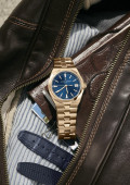 Because an active life involves countless surprises, the Overseas self-winding adapts to every situation by adopting an attitude of versatile elegance. Depending on the occasion, it easily swaps out its gold bracelet for a blue rubber or alligator leather strap thanks to the Overseas line’s signature interchangeability system. The Overseas dual time and pink gold chronograph models can thus be fitted with the new gold bracelet introduced on this model and available in Vacheron Constantin boutiques and points of sale.