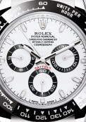 | More characteristics : | Certification Superlative Chronometer Movement Mechanical chronograph movement with column wheel and vertical clutch Bidirectional self-winding via Perpetual rotor on ball bearing Precision −2/+2 sec/day, after casing Function Centre hour and minute hands Small seconds hand at 6 o’clock Chronograph (centre hand) accurate to within 1/8 of a second 30-minute counter at 3 o’clock and 12-hour counter at 9o'clock Stop-seconds for precise time setting Oscillator Frequency at 28,800 beats/hour (4 Hz) Paramagnetic blue Parachrom hairspring Rolex overcoil Large balance wheel with variable inertia High-precision regulating via four gold Microstella nuts Traversing balance bridge Jewelling of 44 rubies Power reserve of approximately 72 hours Case Oyster type (monobloc middle case) 904L steel Black monobloc Cerachrom bezel in ceramic with an engraved tachymetric scale Numerals and graduations coated with platinium via magnetron sputtering Case-back with Rolex fluting Winding crown with Triplock triple waterproofness system Crown guard with integral part of the middle case Dial White lacquer, black snailed counters Hours markers in 18 ct white gold appliques with Chromalight Hands in 18 ct white gold, Chromalight Strap Oyster, three-piece solid links polished centre links and satin-finished outer links with polished edges 904L steel Oysterlock folding safety clasp Easylink 5 mm comfort extension link |