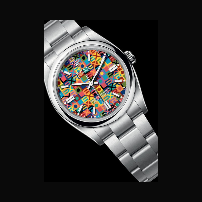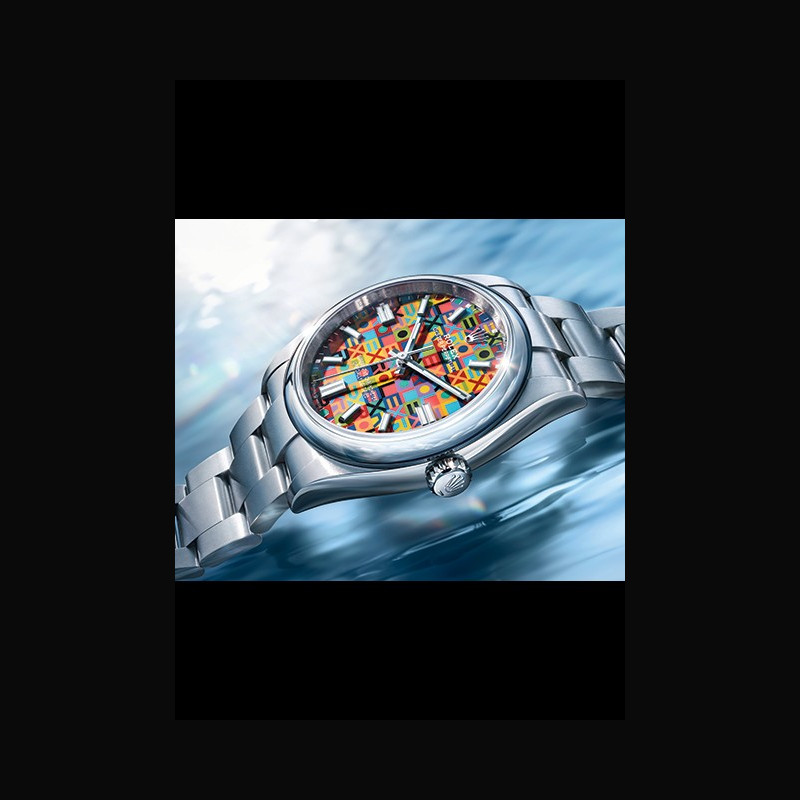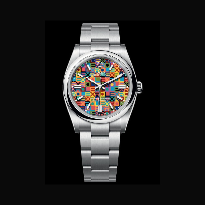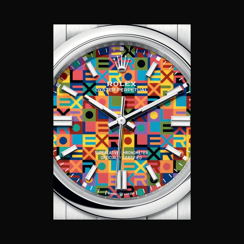 Crafted in Oystersteel, the material customarily used in the current Oyster Perpetual range, the new version of the Oyster Perpetual 36 is notable for its dial decorated with a highly graphic and colourful Jubilee motif.