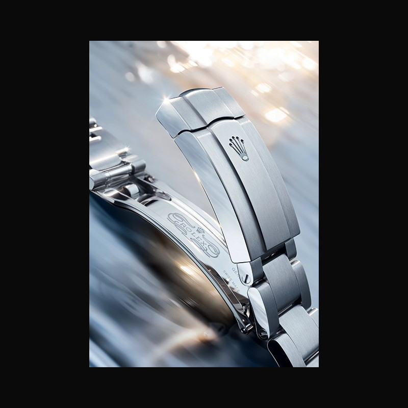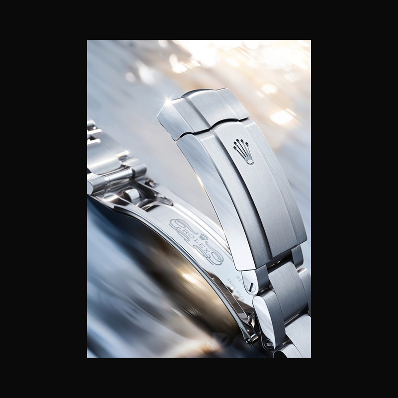 On these timepieces, the Oyster bracelet is furnished with a folding Oysterclasp. It also includes the Easylink comfort extension link, created by Rolex, which allows the wearer to eas- ily adjust the bracelet length by approximately 5 mm. On the versions in 18 ct gold, the Oyster bracelet includes patented ceramic inserts – designed by Rolex – inside the links to help prevent premature wear and enhance its flexibility on the wrist.