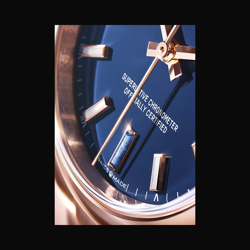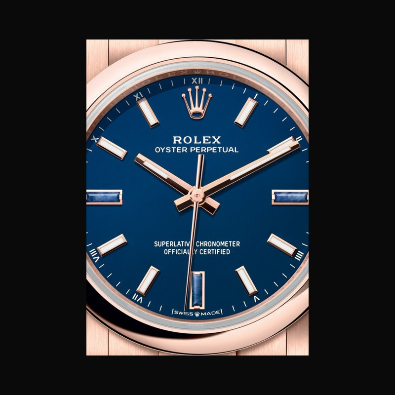 | More characteristics : | Movement Type Perpetual, mechanical, self-winding Calibre 2232, Manufacture Rolex Precision -2/+2 sec/day, after casing Oscillator Syloxi hairspring in silicon with patented geometry. High- performance Paraflex shock absorbers Winding Bidirectional self-winding via Perpetual rotor Power reserve Approximately 55 hours Case Everose gold Dial Blue stone Bracelet / Buckles Type Oyster, three-piece solid links Bracelet Material 18 ct Everose gold Clasp Folding Oysterclasp with Easylink 5 mm comfort extension link Certification Type Superlative Chronometer (official chronometer certification + Rolex certification after casing) |