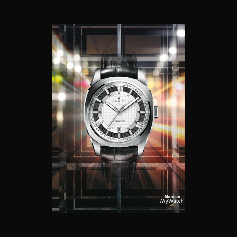 | + More characteristics : | Movement New proprietary Caliber P-341 Double Rotor / A Perrelet exclusive Dial Grid-work center Steel buckle |