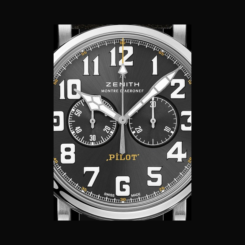 On the subject of icons, Zenith’s line of Pilot watches – specifically the Type 20 collection – is an airborne legend in its own right. Based on the earliest Zenith dashboard instruments that accompanied pioneers like Louis Blériot during the dawn of aviation, the Pilot Type 20 revisits the archetypical Pilot’s Watch design, with a strong vintage accent. Yet until now, the collection has been heavily influenced by the aesthetic of such historical instruments, using a combination of aged case materials and textured colored dials to emulate an early 20th century look. Today, Zenith has revisited its iconic Pilot’s Watch to offer the utility of a modern instrument with all the analog charm of the past. The Pilot Type 20 Rescue and Pilot Type 20 Chronograph Rescue are offered in a stainless steel case with a slate-greysunray dial, with the signature oversized Arabic numerals entirely made out of Super-LumiNova®.
