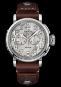 A limited edition of 250 pieces, the Pilot Type 20 Chronograph Silver recalls Zenith’s unique pedigree in the world of aviation timepieces spanning over a century, having accompanied the pioneers of flight in the early 20th century, most notably with Louis Bleriot and his history-making voyage across the English Channel in 1909. With a more direct visual inspiration from historical aircrafts, the 45mm case is made from sterling silver. Like the fuselage of an aircraft, the silver dial features riveted details resembling metal panels, with an erratic satin-brushed surface to bring out the raw beauty of the metal. For maximum legibility at all times, the signature Pilot oversized Arabic hour-markers and “cathedral” hands feature white luminescent paint. Completing the aviator look is the brown calfskin leather strap with a rivet and polished steel pin buckle with a distinctive tab, recalling vintage pilot helmets.