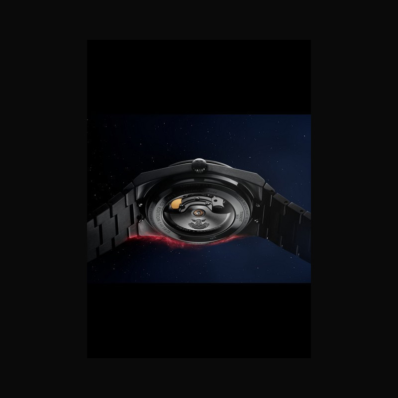 Born from the depths of the cosmos, this full black PVD-coated PRX channels the mythic energy of Grendizer, the lone hero who descended from the stars to defend Earth. With its emblematic bracelet, this commemorative edition mirrors the hero’s journey: built to protect, crafted to endure, and destined to shine in the darkest skies. A reference to retro-futurism, it carries the magnetic charm of vintage anime and the savoir faire of Swiss watchmaking.