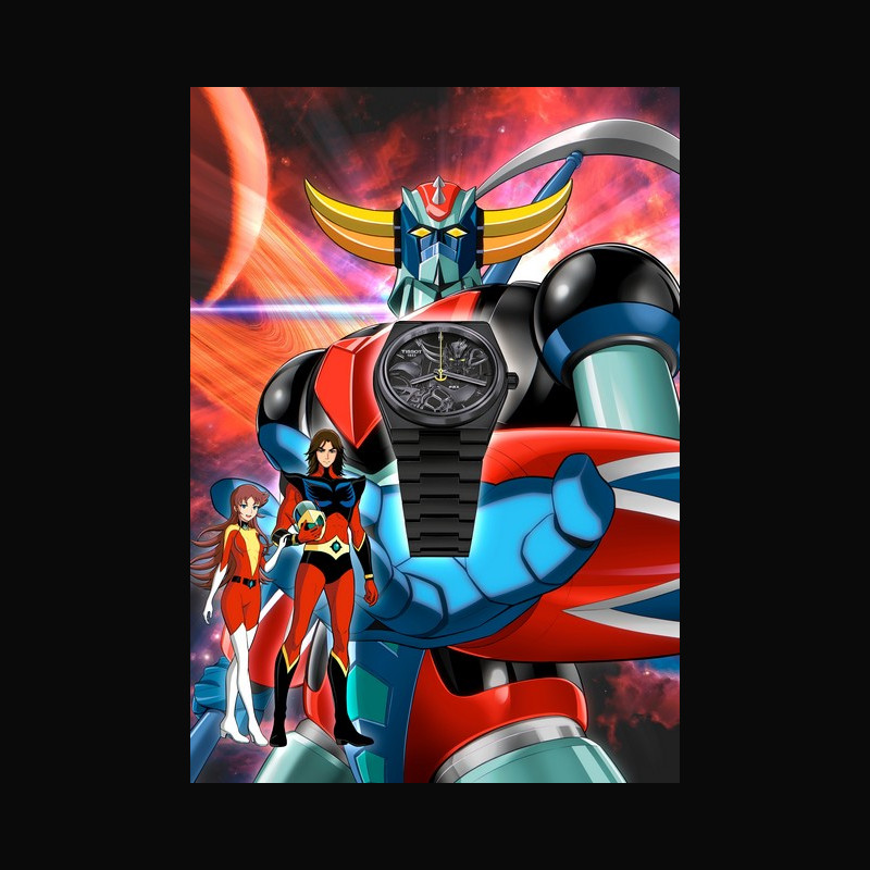 Brought to life by Tissot in collaboration with Go Nagai, the mastermind behind the anime, this timepiece is a reunion with the stories that once lit us up. The watch comes housed in a Spazer UFO-inspired capsule, nested within a striking gold and black outer box. Inside, drawings specially created for this limited edition awaits, hand-signed by Go Nagai himself.