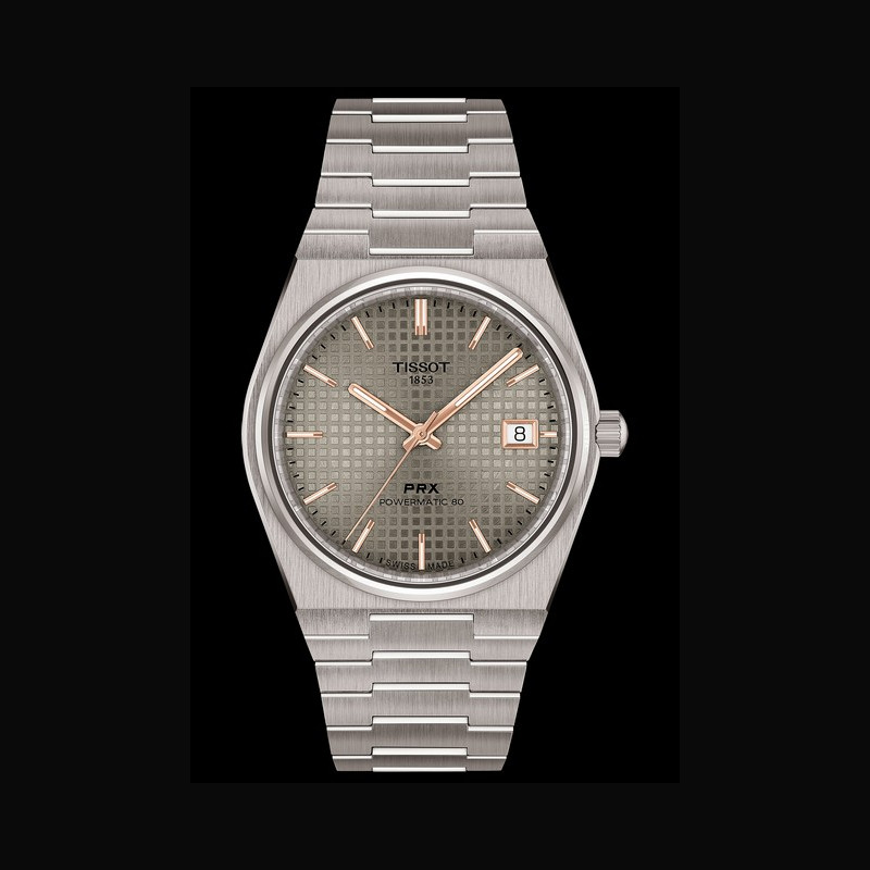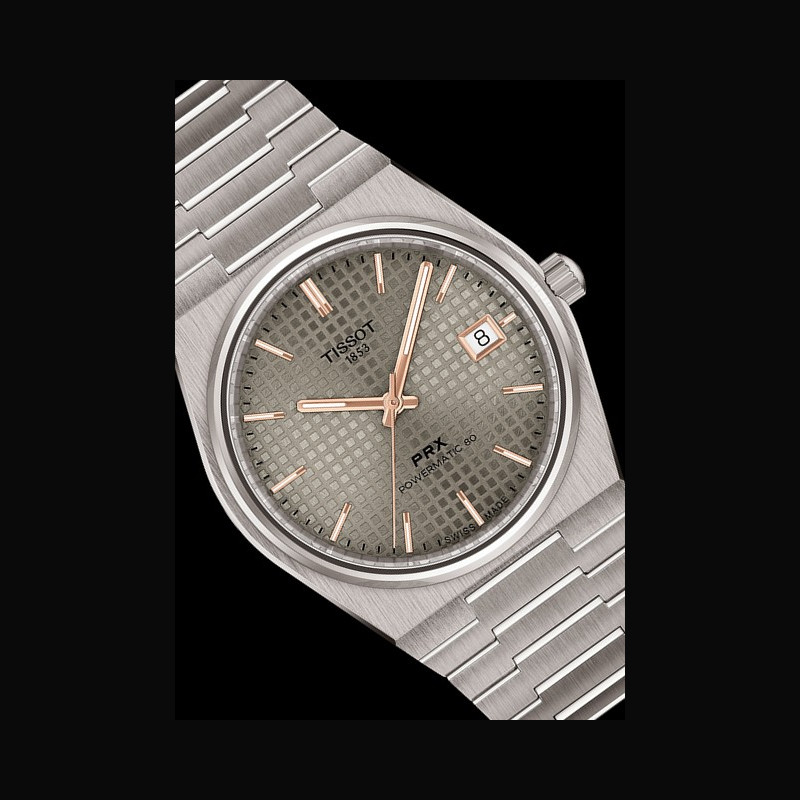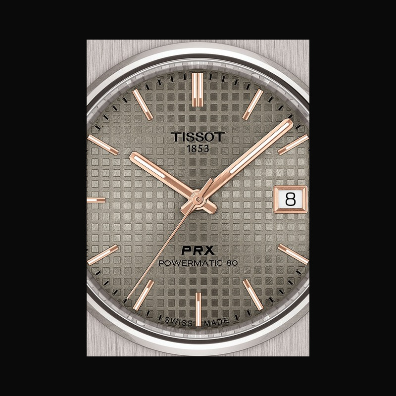 The Tissot PRX collection traces its roots back to 1978, created for those who value both style and endurance. Its philosophy was expressed in its very name, PRX, standing for Precision, Robustness, and 10-bar water resistance, a promise of reliability within a refined design. Revived in recent years, the PRX quickly established itself as a modern classic, with a stainless steel case and integrated bracelet that flow seamlessly into angular geometry, preserving the balance of strength and presence that has defined it across decades.