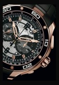 | + More characteristics : | Double - pusher column - wheel chronograph Selfwinding mechanical movement with micro-rotor 13¾’’’ 42 jewels Finely adjusted in five positions rhodium - plated “Côtes de Genève” decoration Number of parts: 261 Height: 6.30 mm Frequency: 4 Hz (28.800 vph) Power reserve: 52 hours Dial Open on the movement Rhodium-plated arabic numerals at 12 and 6 o’clock integrated into the movement. “Côtes de Genève” pattern Black transfers White gold filet Silver exterior motifs “Côtes de Genève” Pink gold index appliques White ROGER DUBUIS and minute - circle transfers White SLN on the chronograph minute - circle White flange White tachymeter transfers Strap Alternance of satin and polish finishes Pink gold adjustable folding buckle |