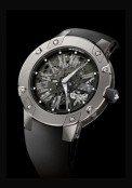 | More characteristics : | Movement Bi-directionnal decentral monobloc micro rotor in platinum Free sprung balance with variable inertia Bottom plate in grade 5 titanium with Titalyt® coating Bridges and balance coq in grade5 titanium with PVD coating Spline screws in grade 5 titanium for the bridges Diameter of the movement: 33.00 mm Thickness: 2.60 mm Number of jewels: 29 Barrel arbor – in 20AP steel Balance: Glucydur. 4 arms. inertia moment 5.75 mg.cm2. angle of lift 53º Frequency: 21.600 vibrations per hour (3Hz) Balance spring: Nivaflex Shock protection: Incabloc 908.22.211.100 (transparent) Power reserve: approx. 42 hours Titanium tripartite case 2 Nitril O-ring seals 16 spline screws in grade 5 titanium Washers in 316L stainless steel |