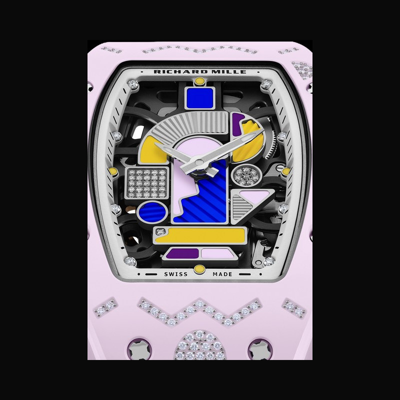 The inspiration draws from the creative energy of the 1980s—an era of emancipation, bold contrasts, and unexpected materials. Richard Mille embraces this heritage, revisiting it through dials rich in multiple decorative techniques. As Cécile Guenat, Creative and Development Director, noted during the creation of the two previous collections: ‘These watches play on the juxtaposition of vibrant colours and contrasting textures, asserting a singular and disruptive graphic identity.’