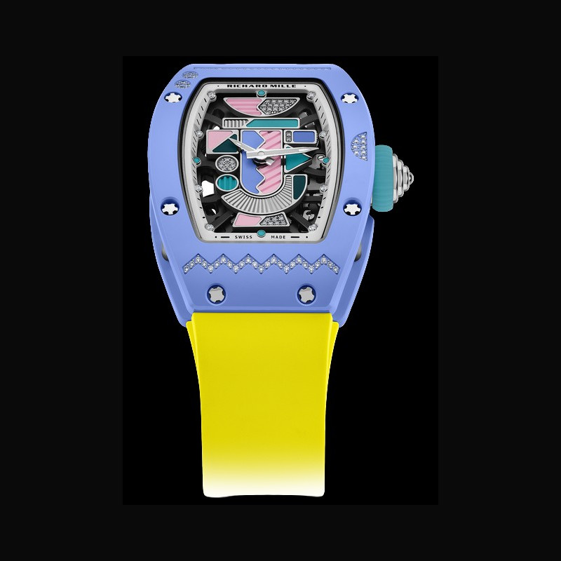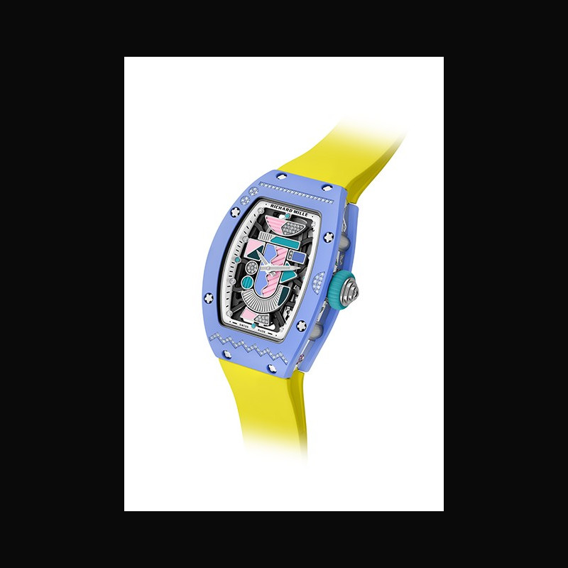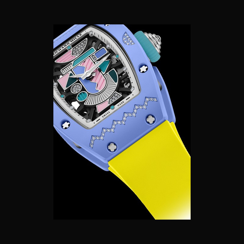 The inspiration draws from the creative energy of the 1980s—an era of emancipation, bold contrasts, and unexpected materials. Richard Mille embraces this heritage, revisiting it through dials rich in multiple decorative techniques. As Cécile Guenat, Creative and Development Director, noted during the creation of the two previous collections: ‘These watches play on the juxtaposition of vibrant colours and contrasting textures, asserting a singular and disruptive graphic identity.’