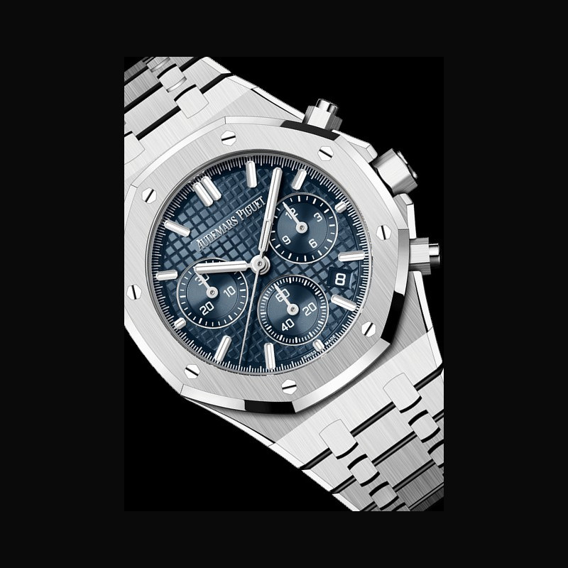 Over the decades, the Royal Oak Chronograph has undergone several evolutions. The case was reimagined in 2008 (Ref. 26300) to mirror the three-part construction of the Royal Oak Offshore collection. In 2012, the line was up sized to 41 mm (Ref. 26320), introducing a more classic dial layout and refined proportions. A bold redesign followed five years later (Ref. 26331) featuring enlarged subdials, a repositioned date aperture, and a more expressive visual language.