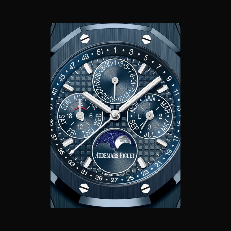 Swiss Haute Horlogerie manufacturer Audemars Piguet is pleased to unveil a new variation of the Royal Oak Selfwinding Perpetual Calendar in 41 mm. Combining refined aesthetics with technical mastery, this timepiece brings together two innovations launched in 2025: the “Bleu Nuit, Nuage 50” ceramic and Calibre 7138. The latest movement features a revolutionary all-in-one crown adjustment system. Protected by two patents, it allows the calendar to be adjusted without tools and without risk of damage, significantly enhancing the perpetual calendar experience. Designed with ergonomics and ease of use in mind, the model also presents a harmonious dial that simplifies the reading of calendar indications. Its case and bracelet are crafted entirely in “Bleu Nuit, Nuage 50” ceramic – a signature hue rooted in the Manufacture’s history – endowing the watch with remarkable lightness that accentuates the elegance of its silhouette. The depth of this colour is further enriched by the interplay of polished and satin-brushed surfaces, creating a captivating play of light. Marrying cutting-edge technology with traditional hand-finishing, this Royal Oak Perpetual Calendar reflects Audemars Piguet’s uncompromising pursuit of excellence and the savoir-faire of its watchmakers.