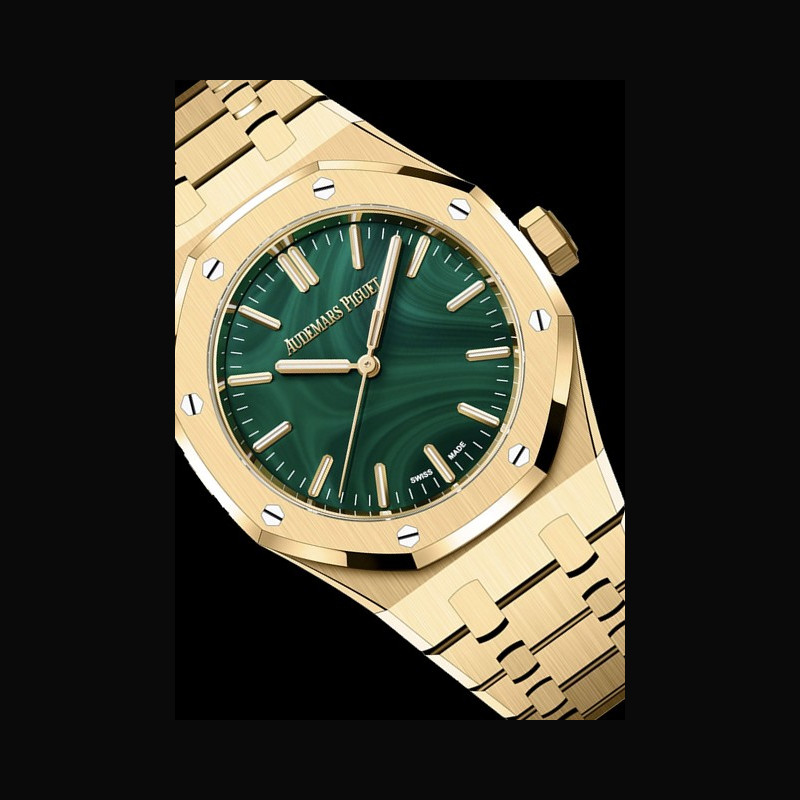 NEW MALACHITE DIALS DRESS ROYAL OAK SELFWINDING MODELS IN 37 MM AND 41 MM