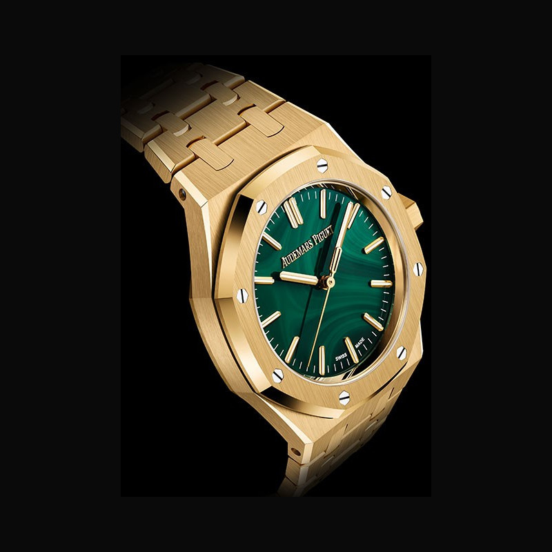 Swiss Haute Horlogerie manufacturer Audemars Piguet is delighted to launch two new Royal Oak Selfwinding models. Crafted in yellow gold and available in 37mm and 41mm sizes with matching yellow gold bracelets, these two timepieces come alive with malachite stone dials.