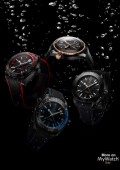 • Why the colours? Imagine you are descending below the waves of the ocean. At 5 m, the first colour that is no longer visible is red. That means that this “military” divers’ watch will gain a camouflage advantage by gradually matching your wetsuit. Go deeper to 275 m and the last colour you’ll see, based on light penetration, is the exact shade of blue found on the blue Deep Black model. Finally, at a depth of 300 m, the ocean will turn black. The 18K Sedna™ gold model is a lifestyle piece built for people who enjoy time on deck.