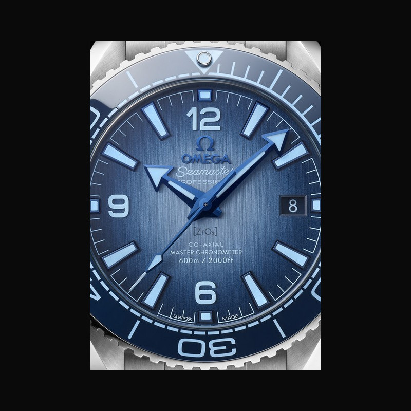 As its name make clear, it is well and truly at home in the ocean, performing brilliantly 600 metres beneath the surface. Powered by OMEGA’s Co-Axial Master Chronometer 8800,this 39.5 mm model has a case and bracelet in stainless steel. A blue ceramic bezel with light blue diving scale encircles the Summer Blue ceramic dial, which is PVD treated and varnished with a gradient finish, and completed with blued hands and indexes filled with a unique light blue Super-LumiNova.
