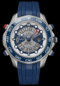 | More characteristics : | Movement Calibre: OMEGA 5701 The OMEGA Seamaster Regatta is powered by an all-new multi-functional quartz chronograph movement, OMEGA’s calibre 5701, with thermo-compensated integrated circuit. Its special features include an inertial sensor unit, brightness sensor, and new LCD display function. A satin- finish rhodium-plated battery cover with red engraving gives the 5701 a unique finish. Battery life: 30 months Case Titanium Between lugs: 20 mm Lug to lug: 50.00 mm Dial Grey Strap / Buckles Rubber strap Blue Strap surface: Rubber Strap underside: Rubber Buckle type: Foldover clasp Buckle material: Titanium |