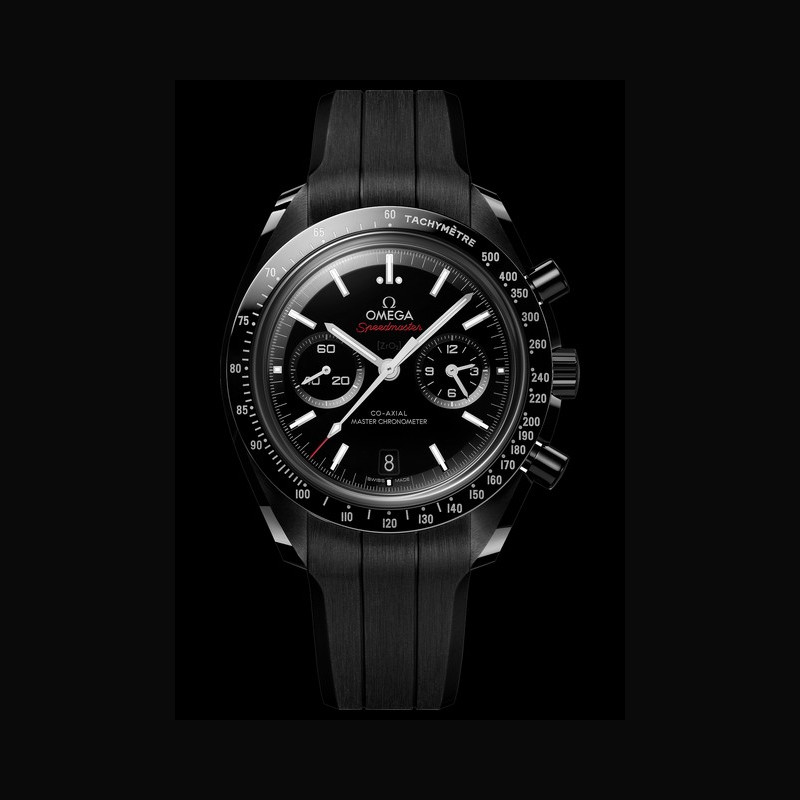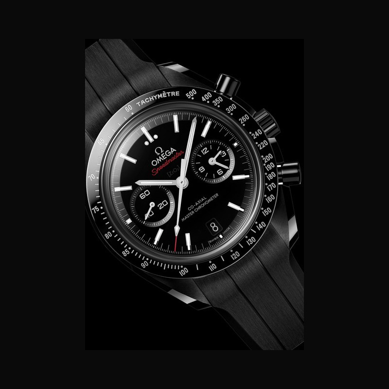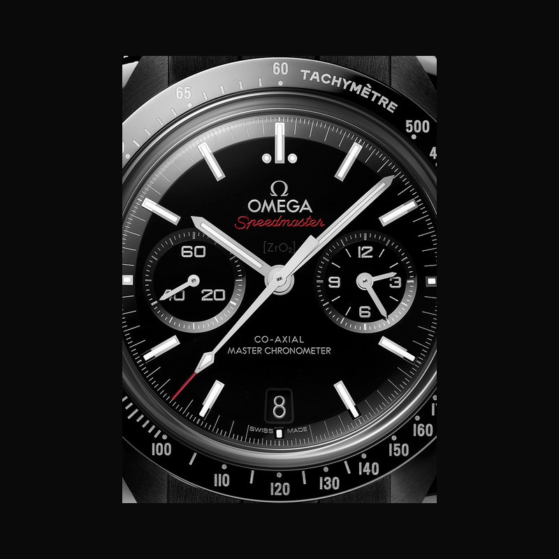 The collection's technical evolution centres on OMEGA's mastery of ceramic craftsmanship. The new bevelled polished ceramic process achieves extraordinary precision, creating surfaces of remarkable depth and brilliance. All models now feature improved case proportions with slimmer profiles while maintaining the bold 44.25mm presence that defines the Dark Side aesthetic.
