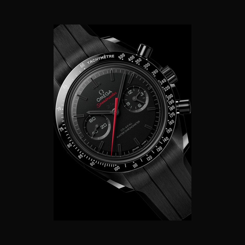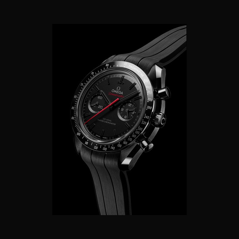 The collection's technical evolution centres on OMEGA's mastery of ceramic craftsmanship. The new bevelled polished ceramic process achieves extraordinary precision, creating surfaces of remarkable depth and brilliance. All models now feature improved case proportions with slimmer profiles while maintaining the bold 44.25mm presence that defines the Dark Side aesthetic.