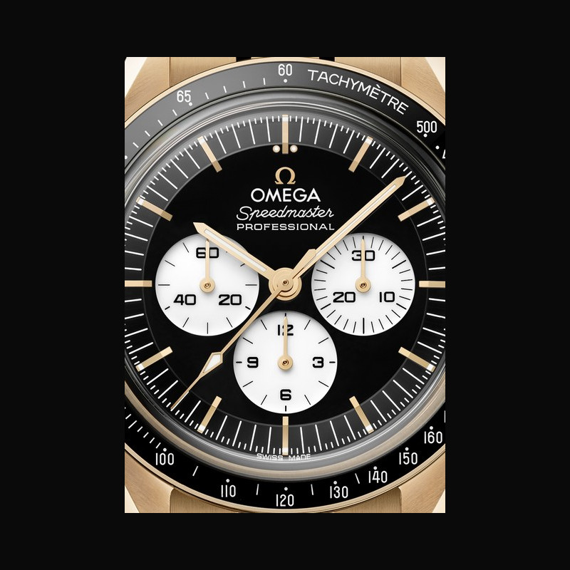 In combination with the black and white dial, the new watches include black ceramic bezel rings filled with a tachymeter scale in white enamel. The front features a box-form scratch-resistant sapphire crystal with an anti-reflective treatment. Around the wrist, the watches are distinguished by their polished-brushed bracelets, created in the standard Moonwatch style with OMEGA’s patented comfort release adjustment system.