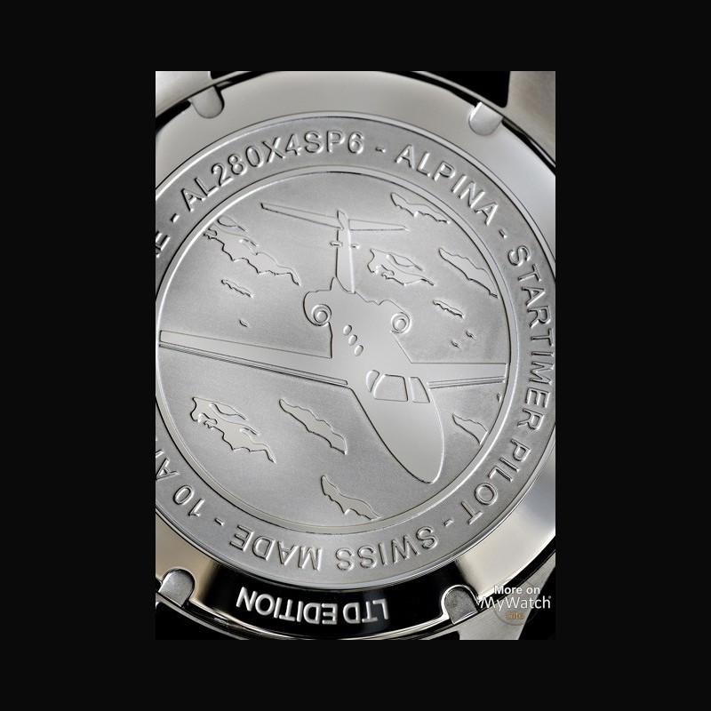 In acknowledgement of the excellent craftsmanship and dedication to perfection of another world-famous aviation brand, and one with which Alpina has a close working relationship, the Startimer Pilot Big Date has a Cessna aircraft beautifully engraved on the case back.