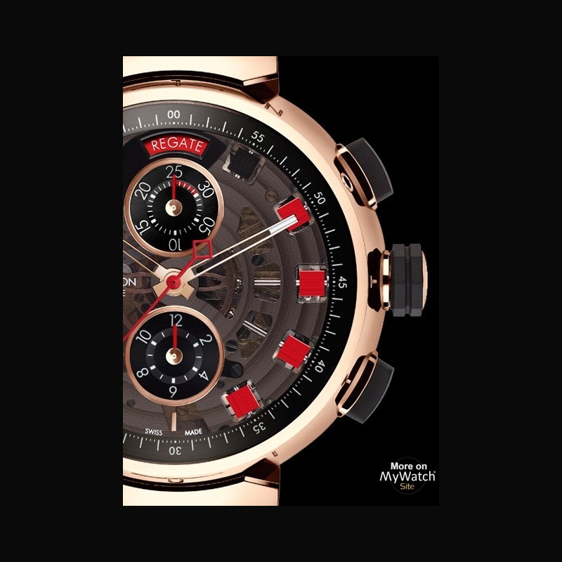 | More characteristics : | MOVEMENT Manufacture movement LV156. La Fabrique du Temps Louis Vuitton Power reserve: 48h Oscillations: 28 800 per hour CASE 18-carat pink gold DIAL grey sapphire crystal dial BRACELET dark grey alligator strap Buckle: ardillon 18-carat pink gold |