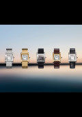 This year, Cartier has dreamt up an hour/minute version that borrows the proportions and bevelled sapphire crystal of the original. It comes in yellow gold with a brown alligator strap and in platinum with a black alligator strap. A first for the Cartier Privé collection, it is also available with a yellow gold and a platinum bracelet, with contrasting satin and polished finishes in a clear nod to the 1970s. The case and bracelet appear as one with their satin finishes. This continuity is juxtaposed against the polished finish, which highlights the outlines of the brancards and the edges of the case.