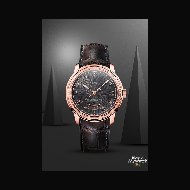 Hand guilloché is an artisanal technique,of which few manufactures have such a fine mastery,in which the material is engraved to produce a repeating decorative pattern. At 12 o'clock and 6 o'clock respectively, the elliptical Parmigiani Fleurier logo and the word "Chronomètre" used by COSC (Swiss Chronometer Testing Institute) stand out from the dial's decoration.