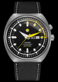 | More characteristics : | Movement ETA C07.621 Automatic 25 jewels 3 hands, Up to 80 hours power reserve Case Sandblasted hardened grade 5 titanium Screw-down titanium case back with 3 stamped seahorses Box shaped sapphire crystal with anti-reflective coating on both sides Thin black metallised anchor in the middle of the sapphire Dial Black sunray Applied indexes with white and yellow Super- LumiNova® Strap / Buckles Black textile with grey stitching Stainless steel extendable folding clasp Satin brushed PVD coated stainless steel cover |