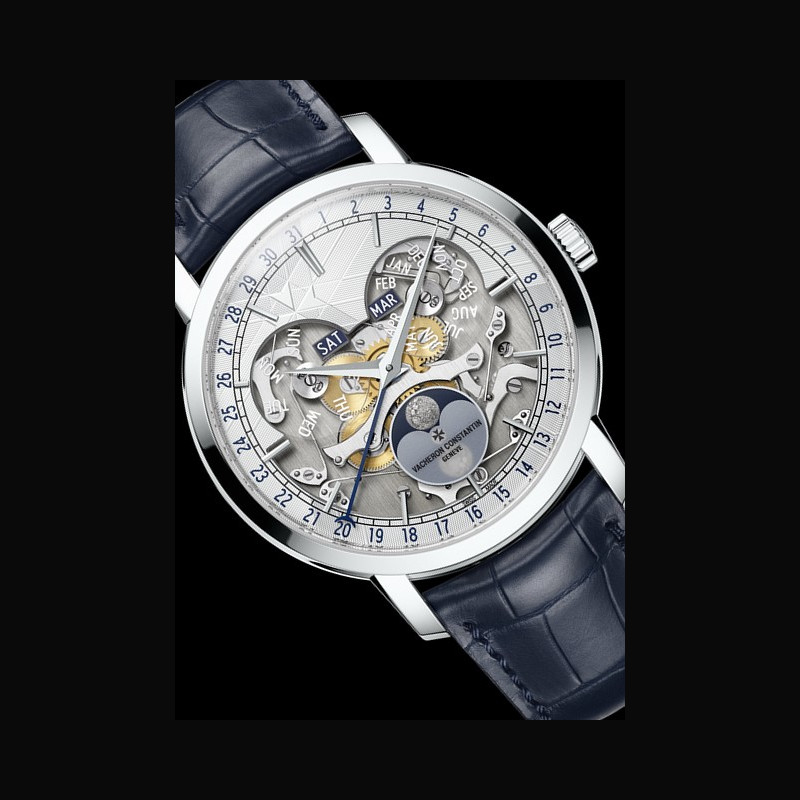 Me first Vacheron Constantin watch with a partially openworked dial was created in 1918. It was a pocket watch with an astronomical calendar – a completely innovative design at the time. Reference 47247, launched in 2002 marked the return of this type of dial to the Maison’s collections with a dial revealing the fascinating show performed by a complex retrograde date mechanism. In 2019, the Traditionnelle Twin Beat perpetual calendar expressed the same spirit in a skilful interplay of contemporary style and traditional sophistication, its openworked dial revealing the complex anatomy of the perpetual calendar calibre. Me openface approach was reinterpreted two years later with the Traditionnelle Openface Complete Calendar; followed in 2023 by the Traditionnelle Tourbillon.