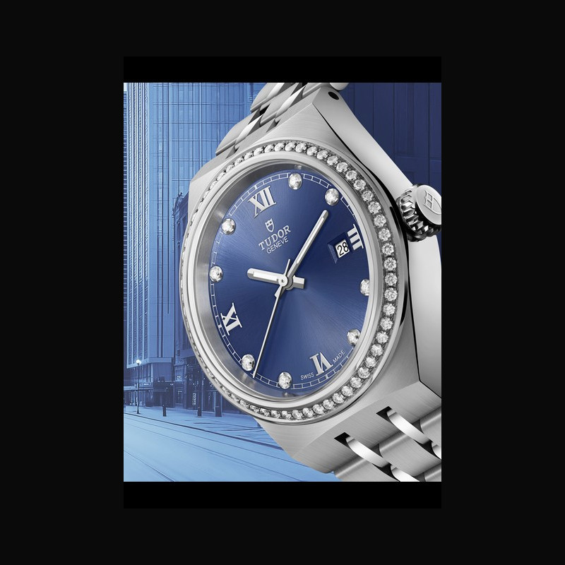 There is the Royal, a longstanding TUDOR model with an air of elegance that’s been refined for decades. Now an exclusive model with a dial in a distinct hue of blue joins the range. This striking new dial accentuates the 28mm Royal with a diamond-set bezel exclusively, both the stainless steel and the S&G configurations, adding a distinctive touch of nobility to the already regal range. There’s nothing subtle about a blue dial and diamonds— but it’s not meant to be discreet, it’s meant to be fabulous! Boasting first-class technical performance and a refined aesthetic, this line sits at the crossroads between classic and sports watches. Royal was a name first used by TUDOR in the 1950s to emphasize the superior quality and exquisite designs of its watches, which stand until today. And now, the model just got even more magnificent.